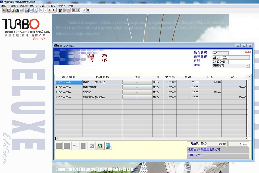 .传票数据可自动从有关之发票、货款交收及存货交易中自动产生。